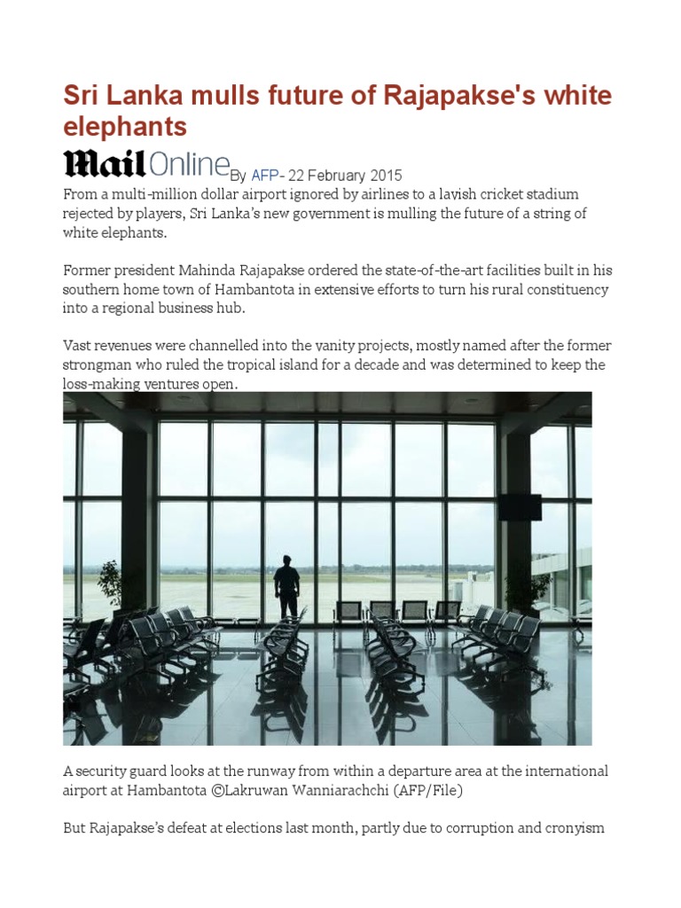 Sri Lanka Mulls Future Of Rajapakse S White Elephants