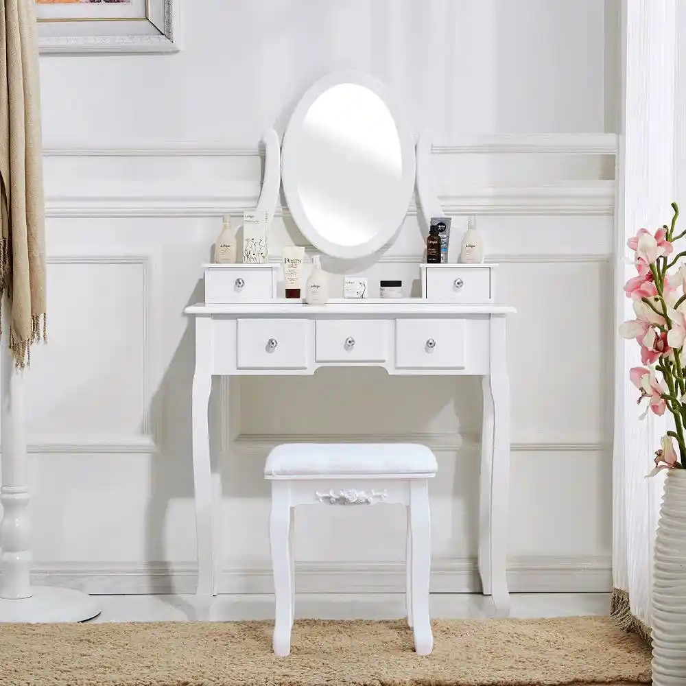 Goplus 5 Drawers Vanity Makeup Dressing Table Stool Set