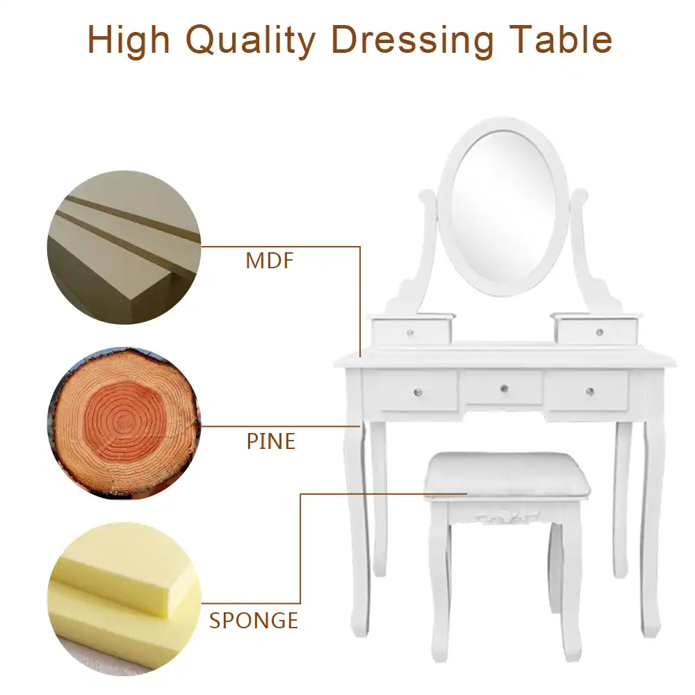Costway Vanity Set Makeup Dressing Table W 5 Drawers