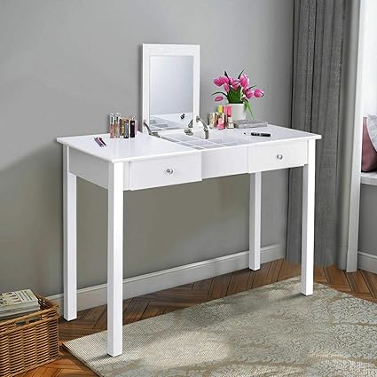 Dressing Table Makeup Desk W Foldable Vanity Mirror 2 Drawers Storage White New Buy Studying Table Desk Beading Table Desk Notebook Table Desk