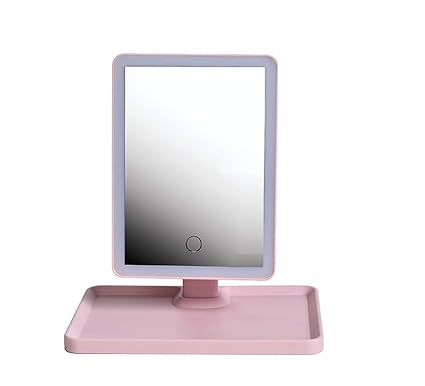 Led Lights Touch Screen Makeup Mirror Professional Vanity Mirror With Storage Tray Beauty Adjustable Countertop 360 Rotating Makeup Beauty Wall