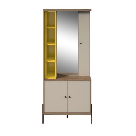 Vanity Jewelry Armoire With Mirror In Yellow And Off White