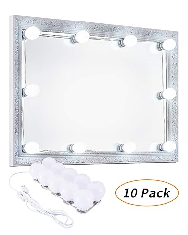 Keonjinn Hollywood Style Led Vanity Mirror Lights Kit With 10 Dimmable Light Bulbs For Makeup Dressing Table Dimmable With White And Yellow No Mirror
